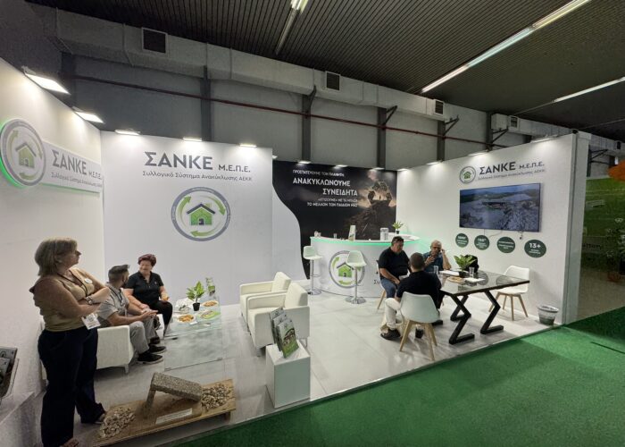 Η φετινή συμμετοχή της ΣΑΝΚΕ περιλάμβανε δύο ξεχωριστά περίπτερα, τα οποία ανέδειξαν τη συμβολή της εταιρείας στην προώθηση της κυκλικής οικονομίας και της βιώσιμης διαχείρισης των ΑΕΚΚ.
